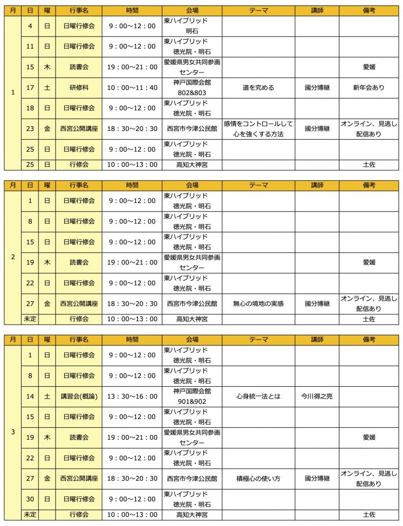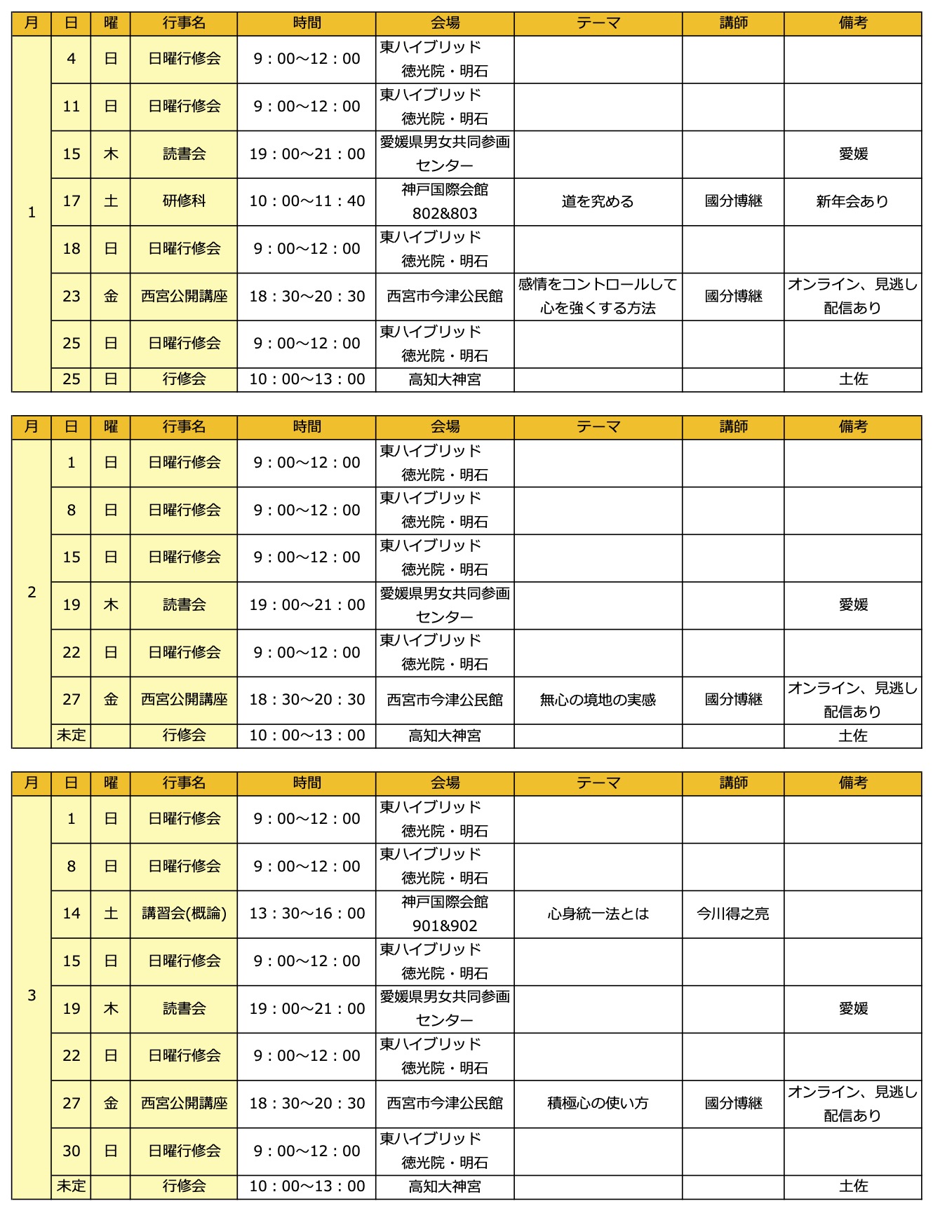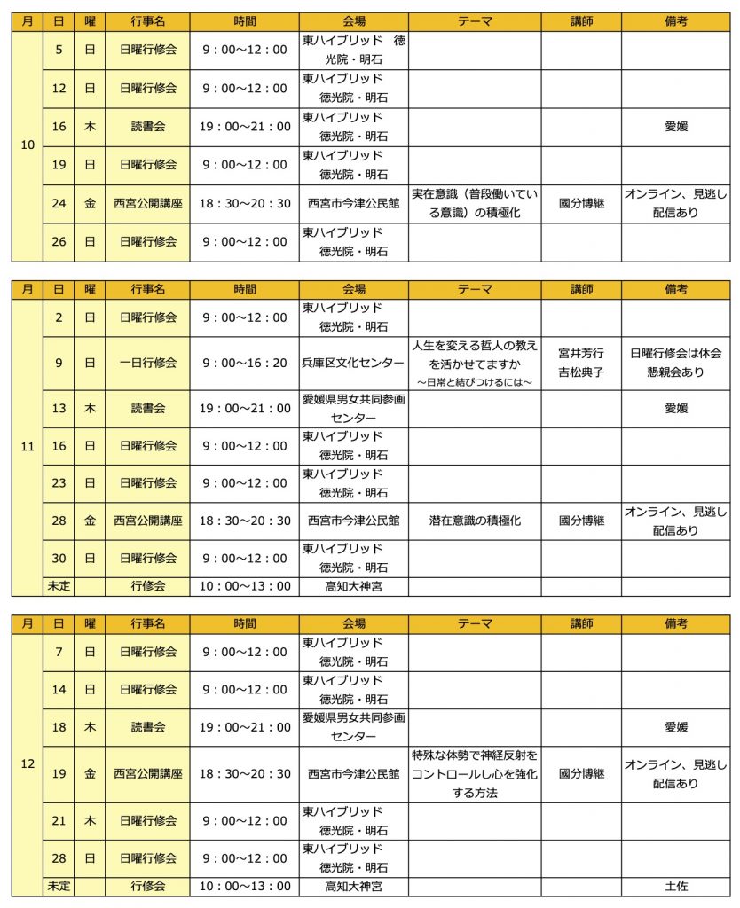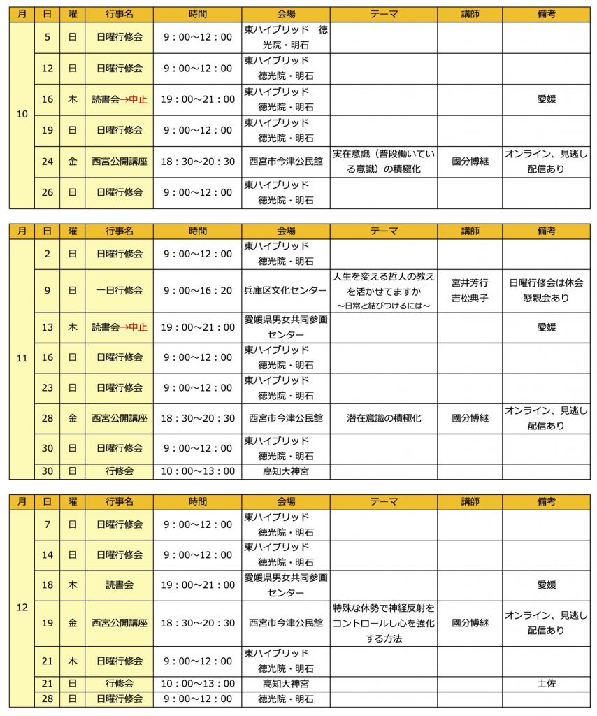 神戸の会の行事日程表 2025年10月〜2026年3月(敬称略)